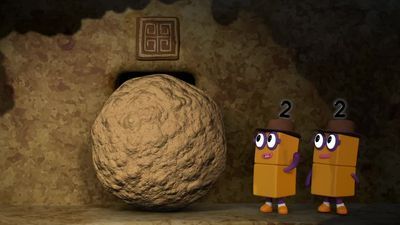 One explores the Double Dungeon of Doom in search of the golden apples, doubling herself all the way up to Octoblock. Learn how to double and halve numbers up to 8 with the Numberblocks.