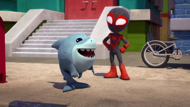Team Spidey swings to the rescue after Miles loses his little pet frog in the big city.